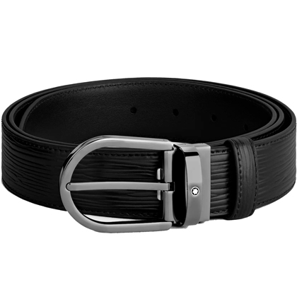 Черный кожаный ремень с подковообразной пряжкой 35мм от магазина премиальных ручек Premium Pens в Дубаи.